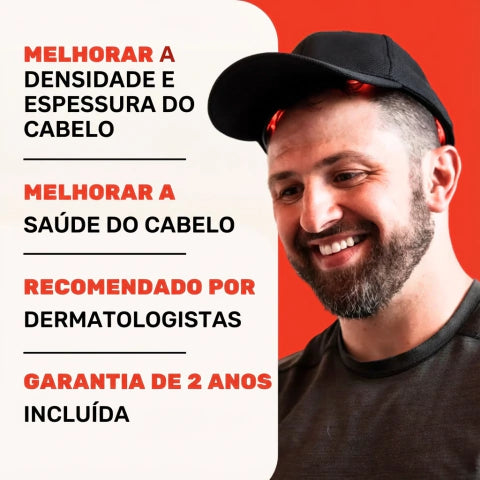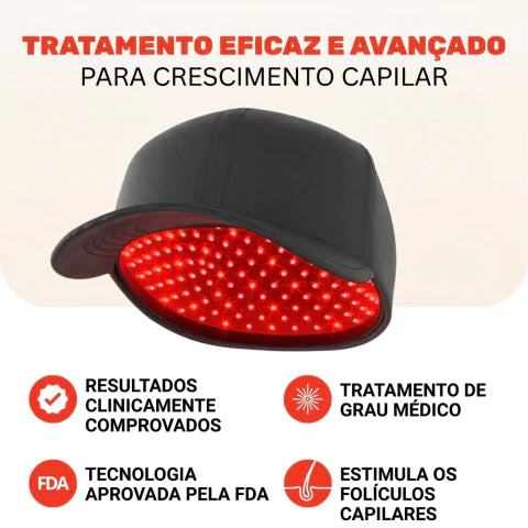 O Boné Infravermelho utiliza a tecnologia de fotobiomodulação, que ativa os folículos capilares através de feixes de luz vermelha e infravermelha. Essa ação promove a regeneração celular, melhora a circulação local e estimula o crescimento natural dos fios.